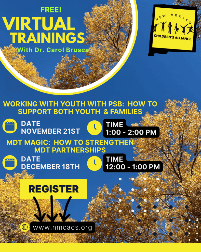 The NM Children’s Alliance is an accredited chapter of the NCA made up of children’s advocacy centers (CACs) in NM. A program of the New Mexico Coalition of Sexual Assault Programs (NMCSAP) as of 2019.